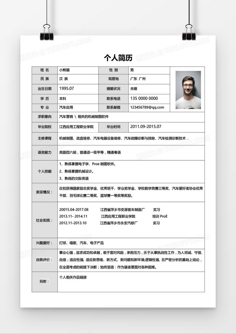 5、其他信息:興趣愛好、個人特長等,可根據實際情況添加。