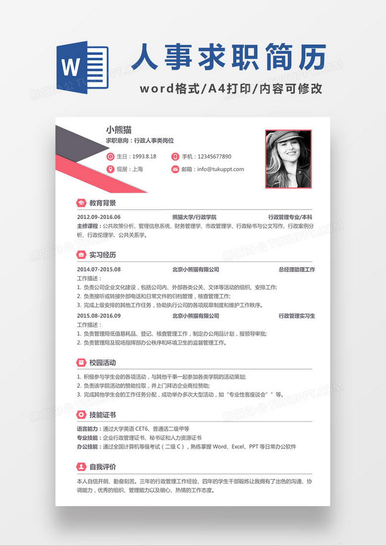 1. 個人簡歷模板(Word格式)介紹