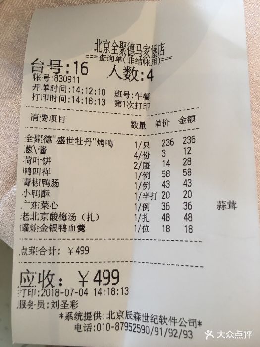 全聚德烤鴨店價(jià)目表