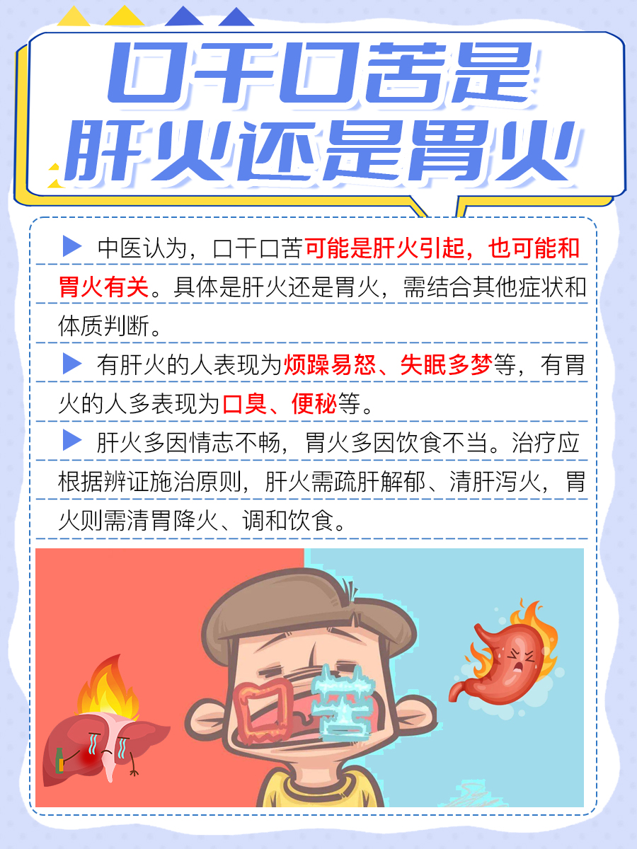 4、綜合考慮:判斷肝火還是胃火,需綜合考慮患者的病史、體質、生活習慣等因素,如有長期熬夜、工作壓力大等情況,容易導致肝火旺盛;如有飲食辛辣、過度飲酒等情況,容易導致胃火旺盛。