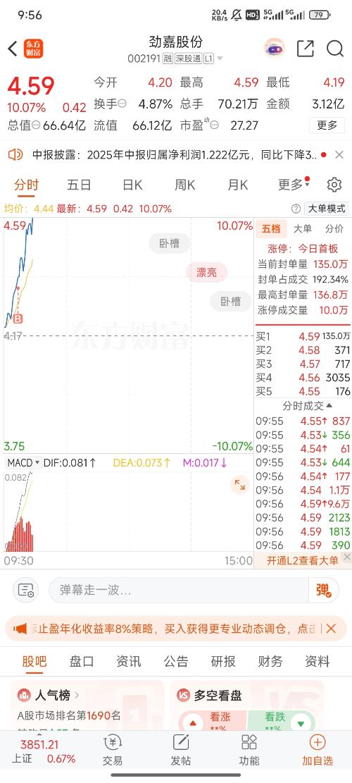 5、股票表現:隨著公司業務的不斷拓展和業績的持續增長,勁嘉股份股票有望在未來繼續表現穩健,為投資者帶來良好的投資回報。
