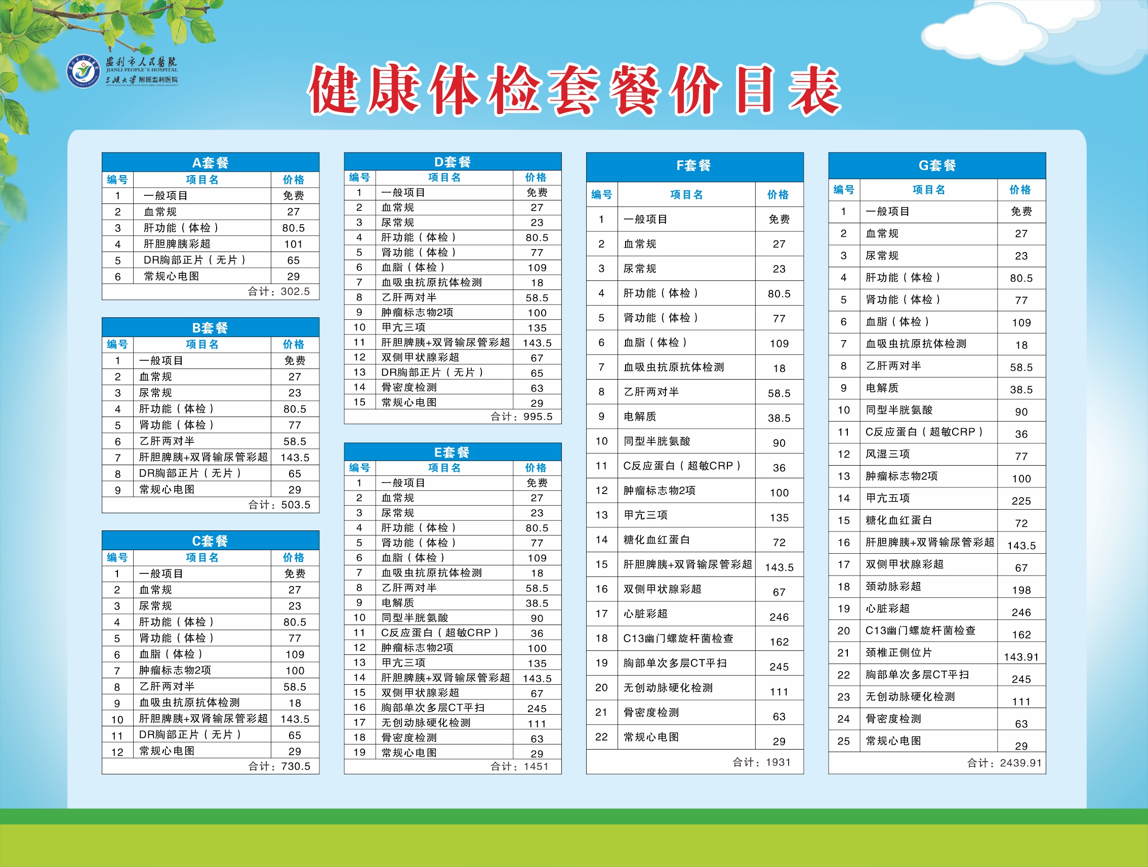 摘要:,,本文全面解析了體檢套餐項目及價格,旨在為您的健康保駕護航。文中詳細介紹了各類體檢套餐所包含的項目,如血常規、尿常規、心電圖、肝功能等,并詳細列出了各項目的價格。通過對比分析不同套餐的優缺點,幫助讀者根據自身需求和預算選擇合適的體檢套餐,從而達到預防疾病、保障健康的目的。