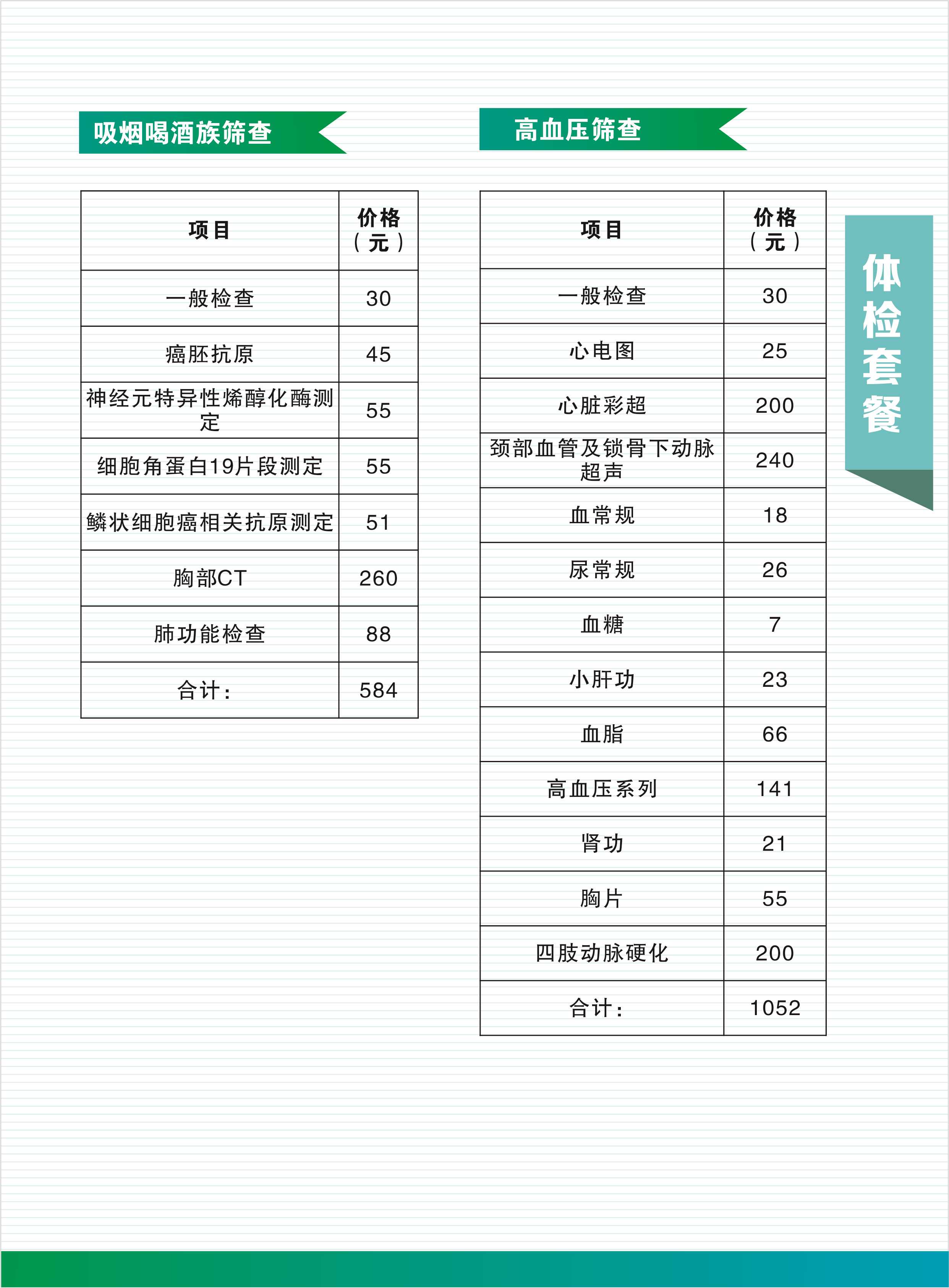 1、基礎套餐:適用于年齡較輕、身體狀況良好的人群,主要檢查基礎指標,如血常規、尿常規、心電圖等,價格相對較低,一般在幾百元左右。