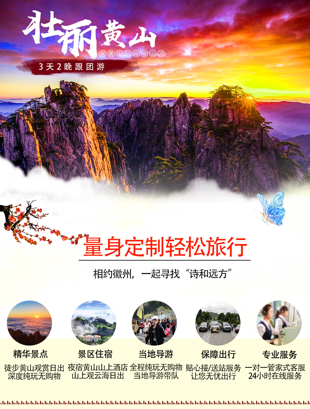 參加黃山當(dāng)?shù)馗鷪F(tuán)游,您將領(lǐng)略到黃山的自然奇觀和豐富文化體驗(yàn),享受到便捷舒適的旅游服務(wù),讓我們一起踏上這段精彩的旅程,探索黃山的美麗與魅力!